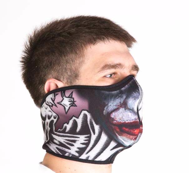 Неопреновая маска на лицо. Высококачественный, элластичный материал обеспечивает максимально комфортную, облегающую посадку маски на лице. Маска скрепляется сзади на липучке.  Размер маски позволяет использовать ее  со шлемом и очками.
