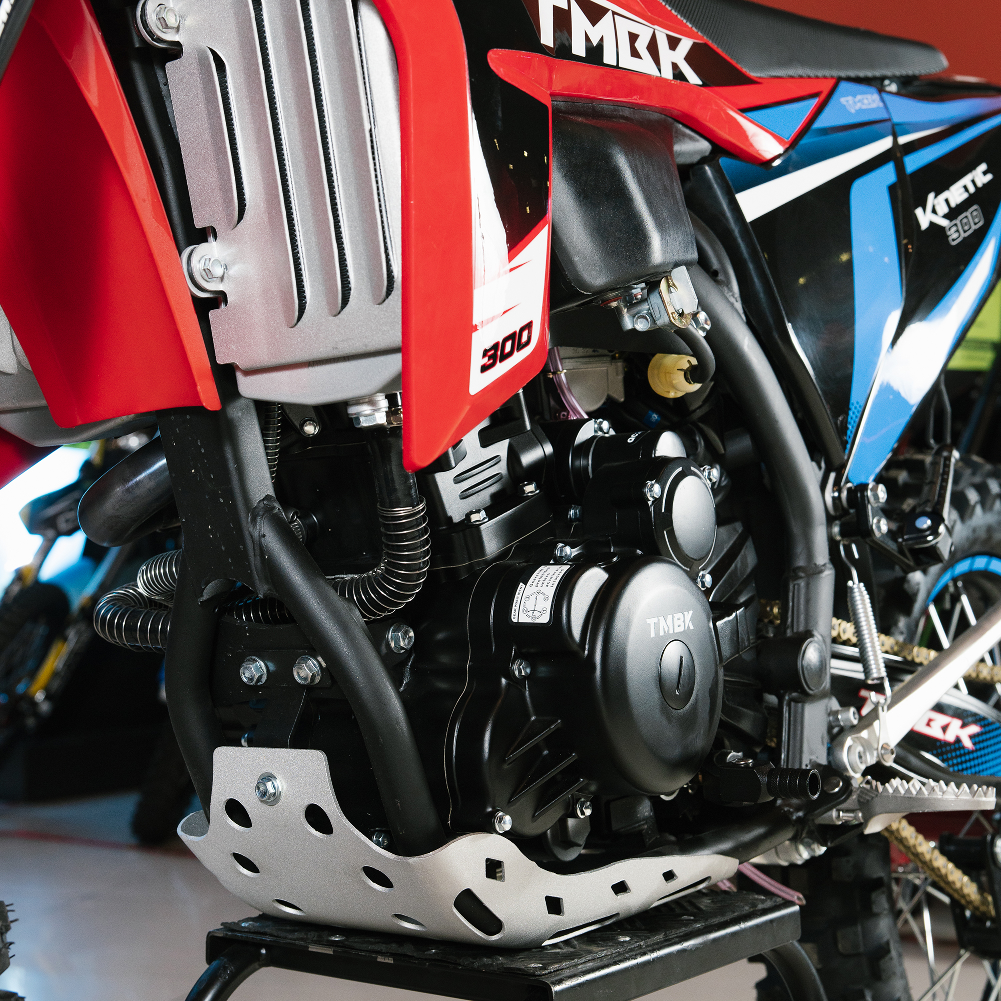 Сердце TMBK Kinetic 300 — надежный 4-тактный 300-кубовый двигатель ZS174MN-5 мощностью 31 л.с., оснащенный балансировочным валом. Благодаря небольшому весу в 118 кг, мотоцикл разгоняется до 140 км/ч. 174-й мотор с водяным охлаждением справится с любыми нагрузками и не перегреется даже в самый жаркий день, когда двигатель работает на максимальных оборотах. Заводская защита картера надежно оберегает «брюхо» Kinetic от ударов камней и других сюрпризов бездорожья. Высокий клиренс в 320 мм защитит двигатель от попадания влаги при форсировании бродов.