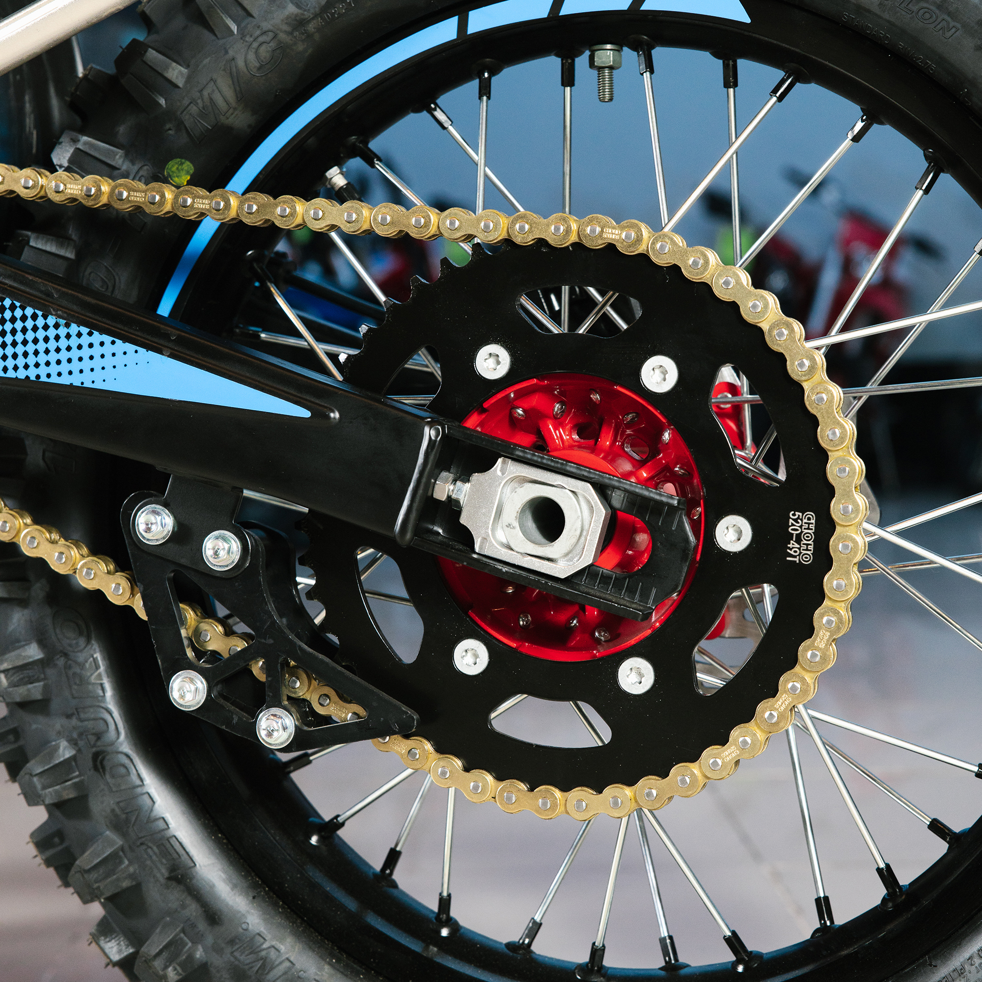 Ключ к максимальному комфорту и полному контролю — настраиваемая подвеска KYB-Tech. Адаптируйте жесткость и отбой амортизаторов для своих задач, будь то расслабленная прогулка по лесным тропам или агрессивная тренировка.