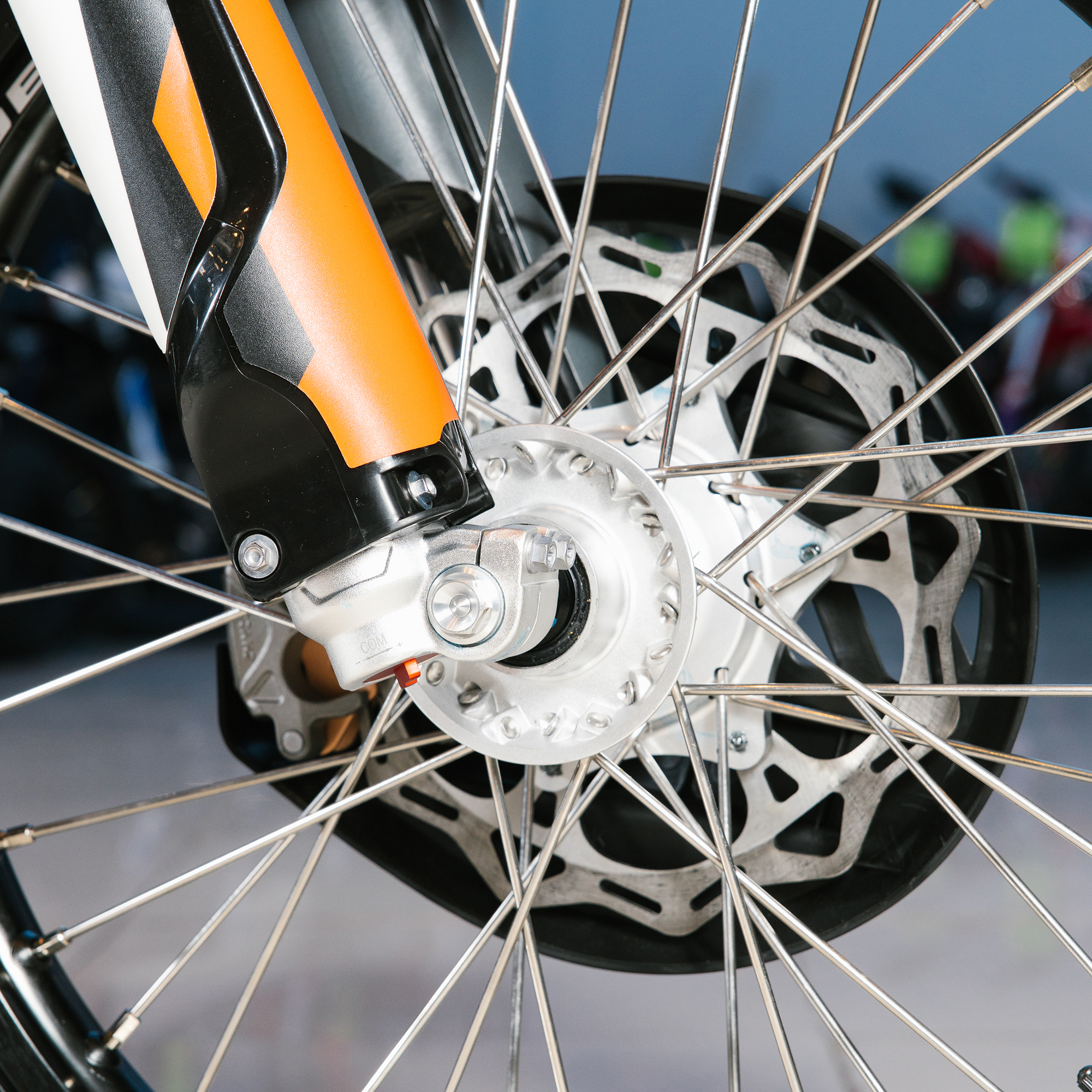 Спереди и сзади установлены антибуксаторы бренда "AJ1", которые притягивают покрышку к ободу, позволяя ездить по бездорожью при низком давлении в камерах, не давая покрышке проворачиваться во время езды. Размер передней покрышки: 80/100 R21. Размер задней покрышки: 120/90-R18. Модель комплектуется "жирной" резиной "KENDA". Все эти характеристики позволяют мотоциклу отлично себя чувствовать в песке и грязи.