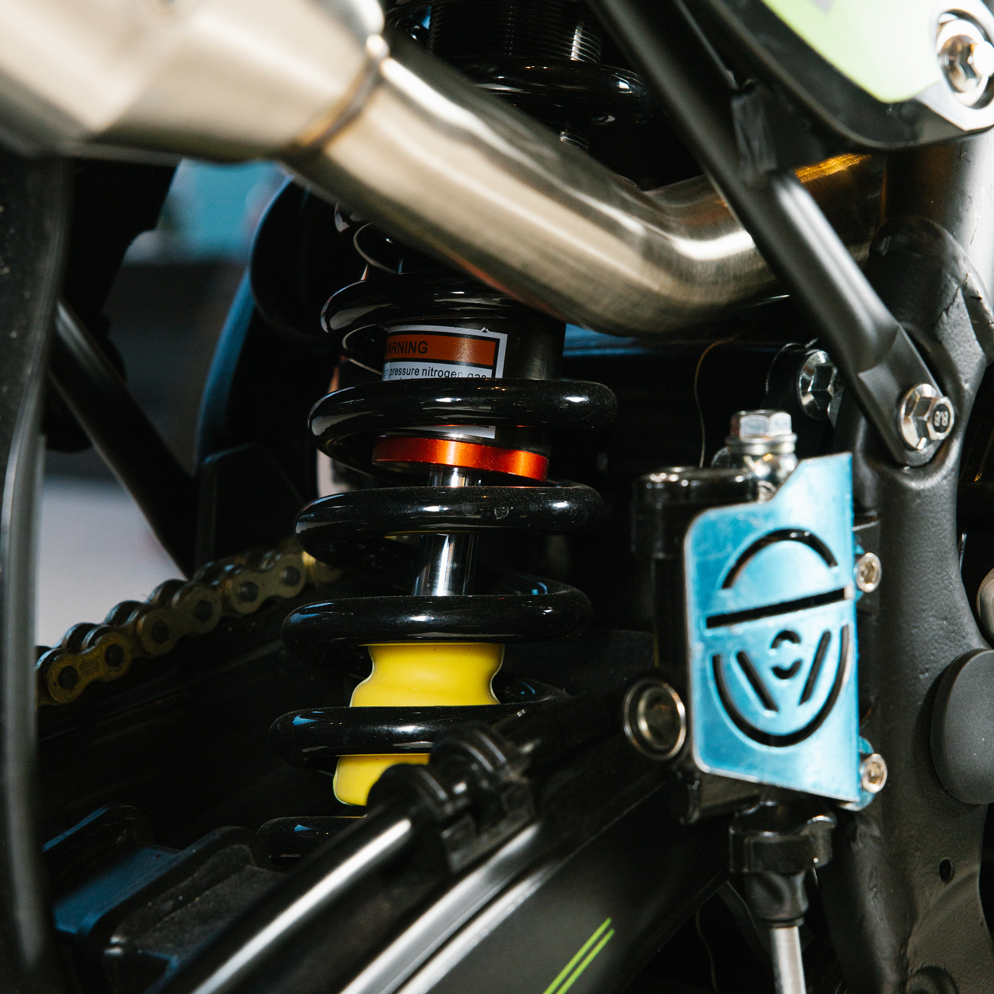 Передняя вилка перевернутого типа. Мотоцикл снабжен моноамортизатором, который соединен посредством системы рычагов прогрессии. Система прогрессии, обеспечивает равномерную, мягкую работу и увеличивает длину рабочего хода подвески.