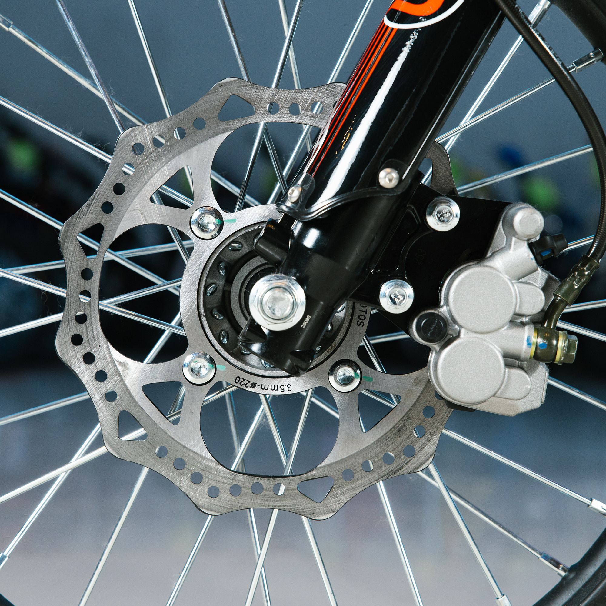 Подвеска стандартная, без излишеств. Вам не придется заморачиваться с настройками, а сразу получить комфорт и безопасное управление питбайка на бездорожье. Установленные пружины на вес райдера 60-70кг. Отметим, что вилка имеет широкие траверсы и при переделки питбайка для МиниМотард либо СТАНТ (stuntriding), в нее встанут широкие литые диски с резиной 120/70".