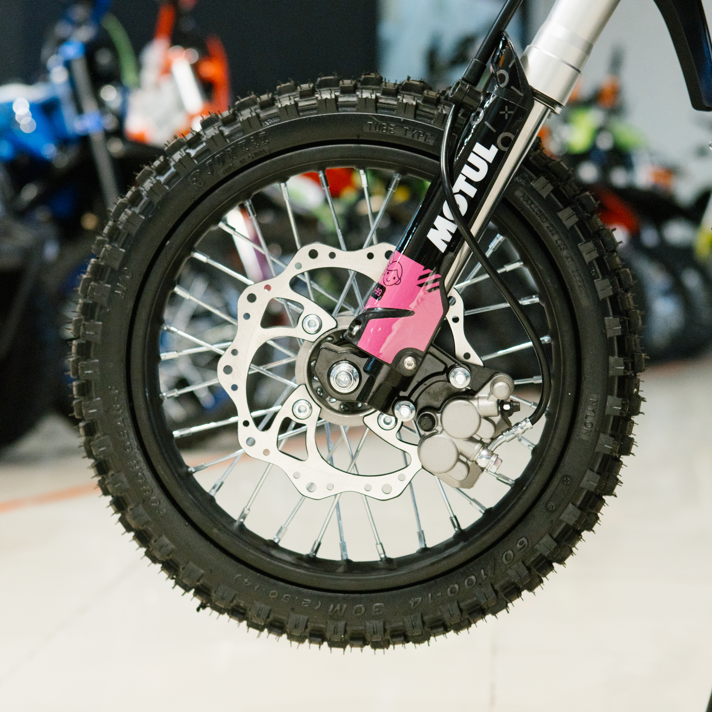 Передняя подвеска: телескопическая, перевернутого типа 655 мм, нерегулируемая (ход 200 мм). Задняя подвеска: Моноамортизатор 265 мм, нерегулируемый. Колеса 14/12. Питбайк укомплектован всем для уверенного покорения внедорожья. Данную модель можно купить в магазине JAZZMOTO. Доставка по РФ, рассрочка и кредит.
