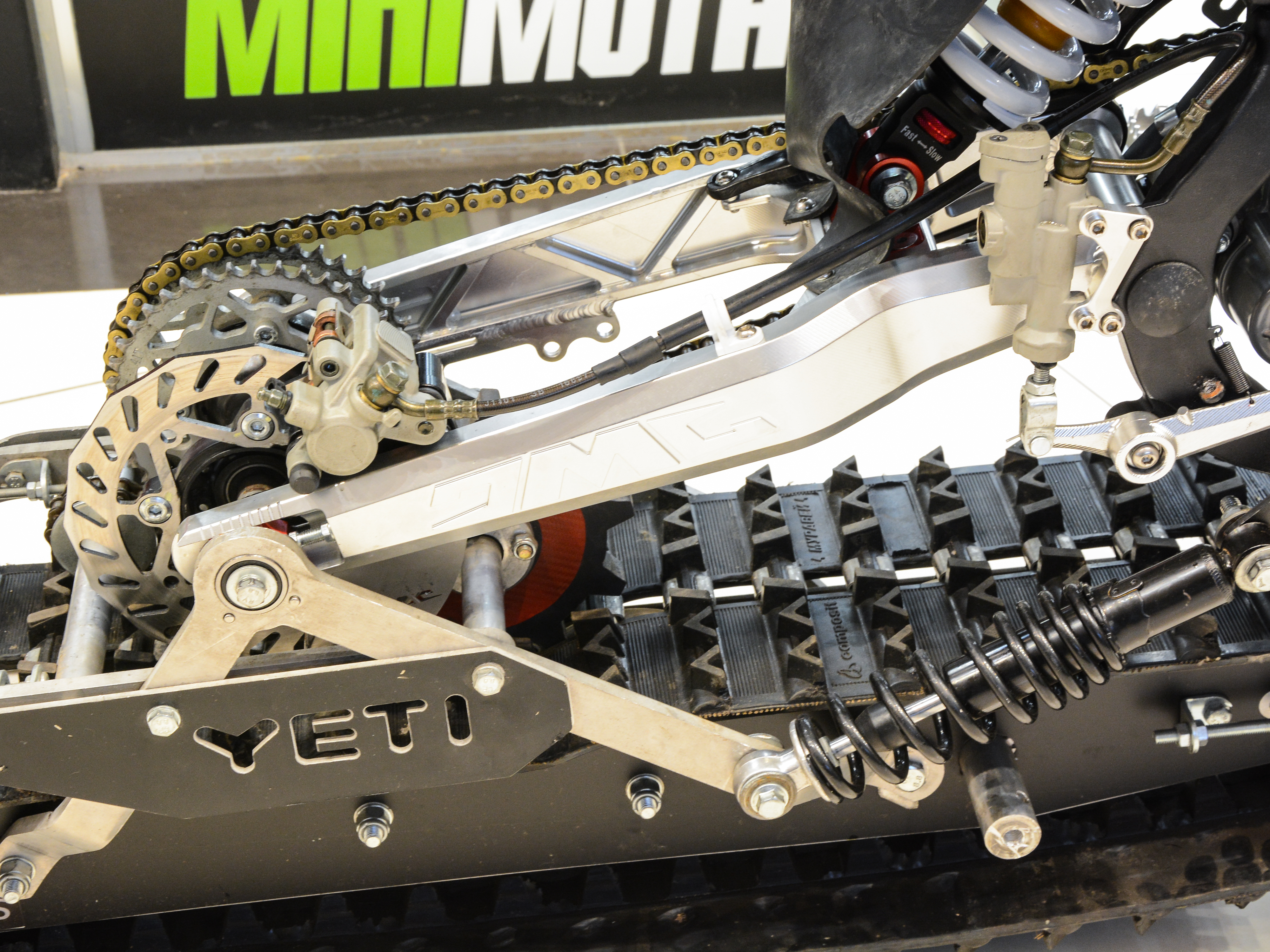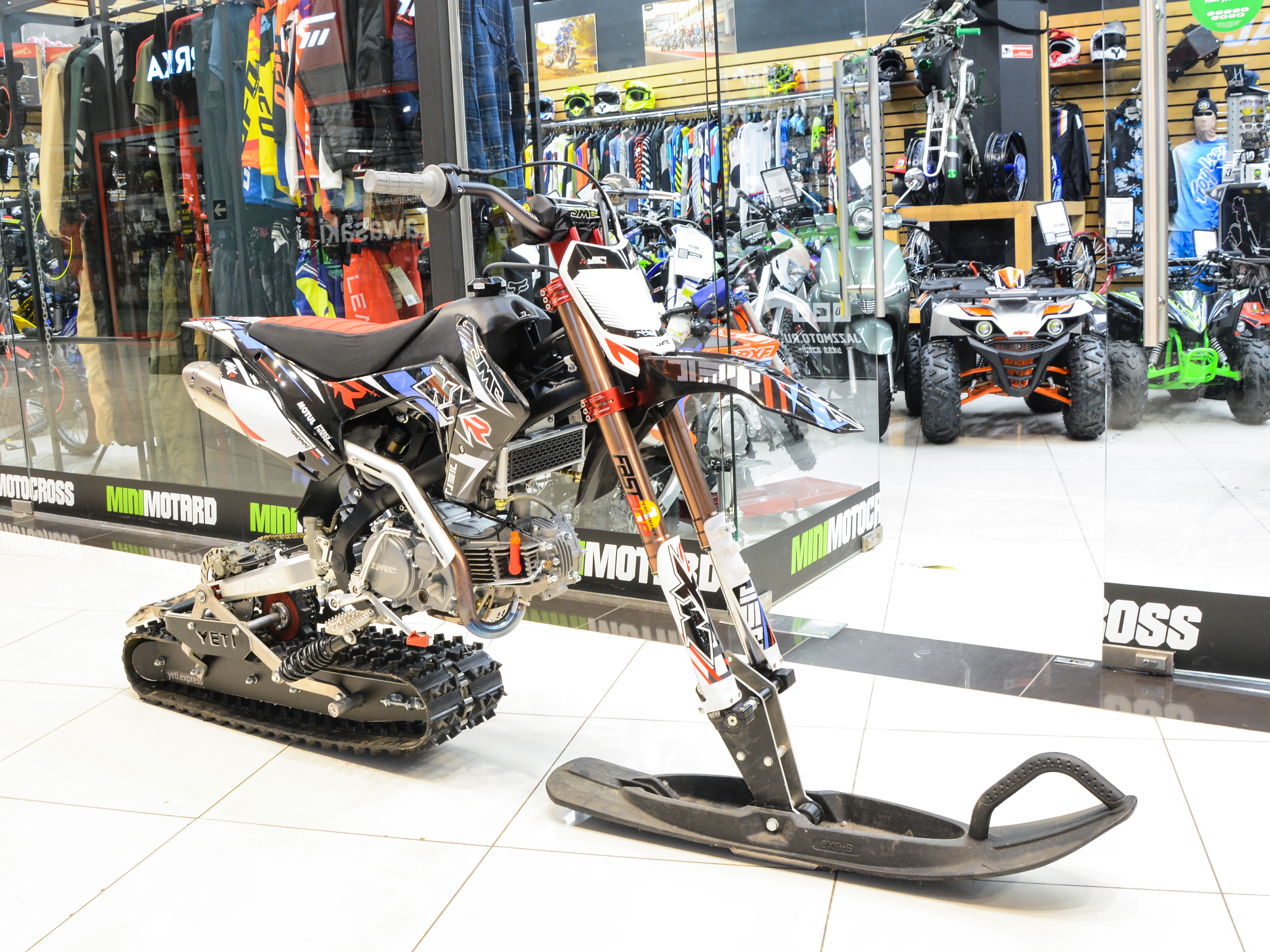 - Установлена гусеница фирмы YETI (за счет ее конструкции получается сохранить компактные габариты тк большая ее часть уходит под сам питбайк. Длина пита изменилась не сильно, а к весу добавилось порядка 20 кг.)