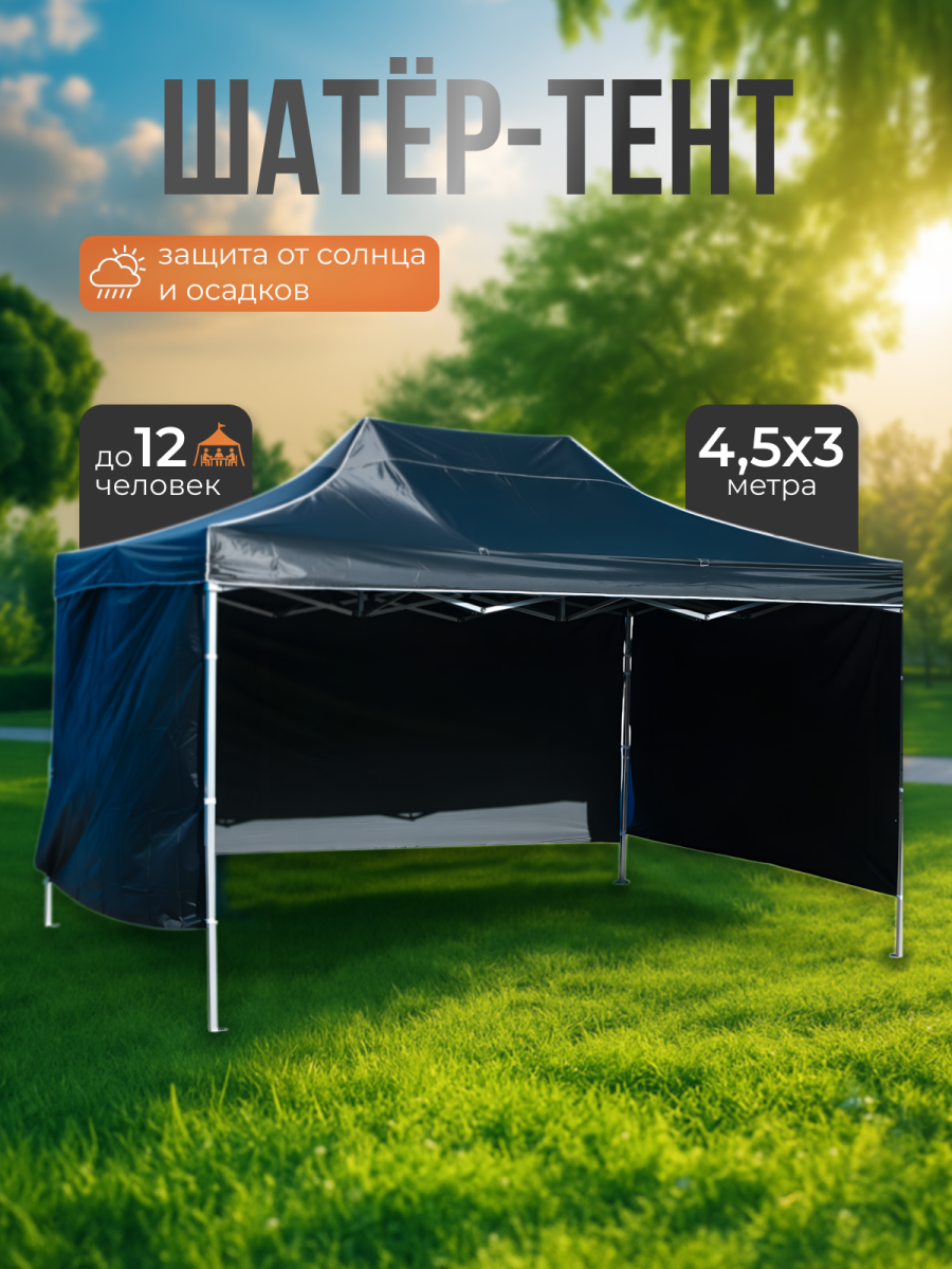Шатер- палатка тент складной 4.5х3 м черный (алюминиевый каркас)