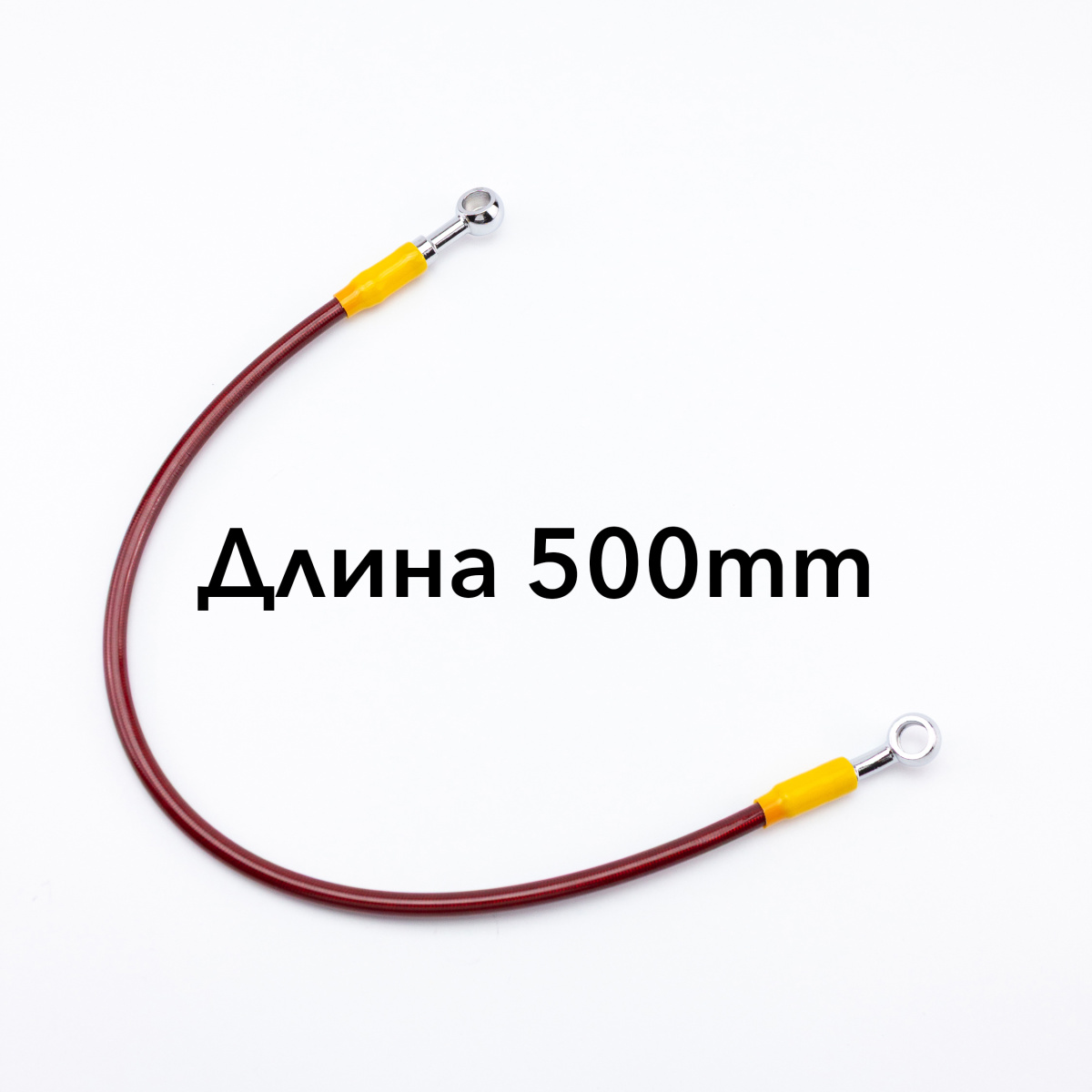 Длина тормозного армированного шланга составляет 500мм (50см) по центрам отверстий под банджо болт.