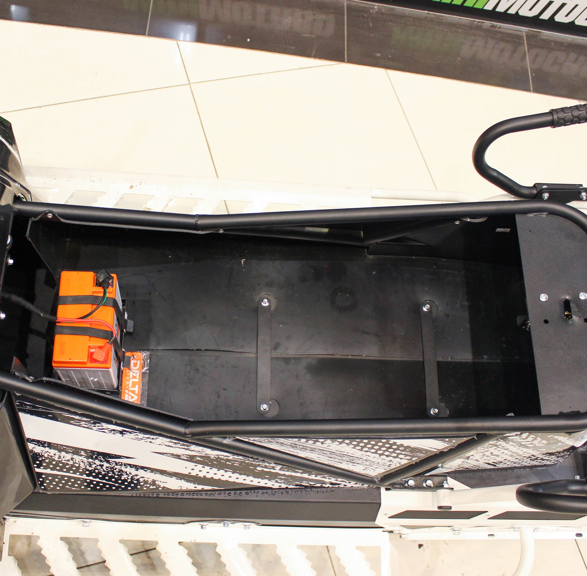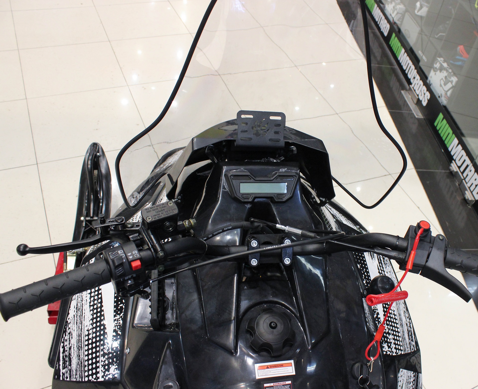 Снегоход комплектуется двухпозиционным подогревом ручек руля и курка газа, розеткой для внешних приборов 12V, электронной многорежимной панелью приборов, системой аварийного глушения двигателя, системой ручного запуска двигателя, гидравлическим дисковым тормозом с функцией стояночного тормоза. Большое комфортное сиденье с подседельным кофром объемом 42 литра.