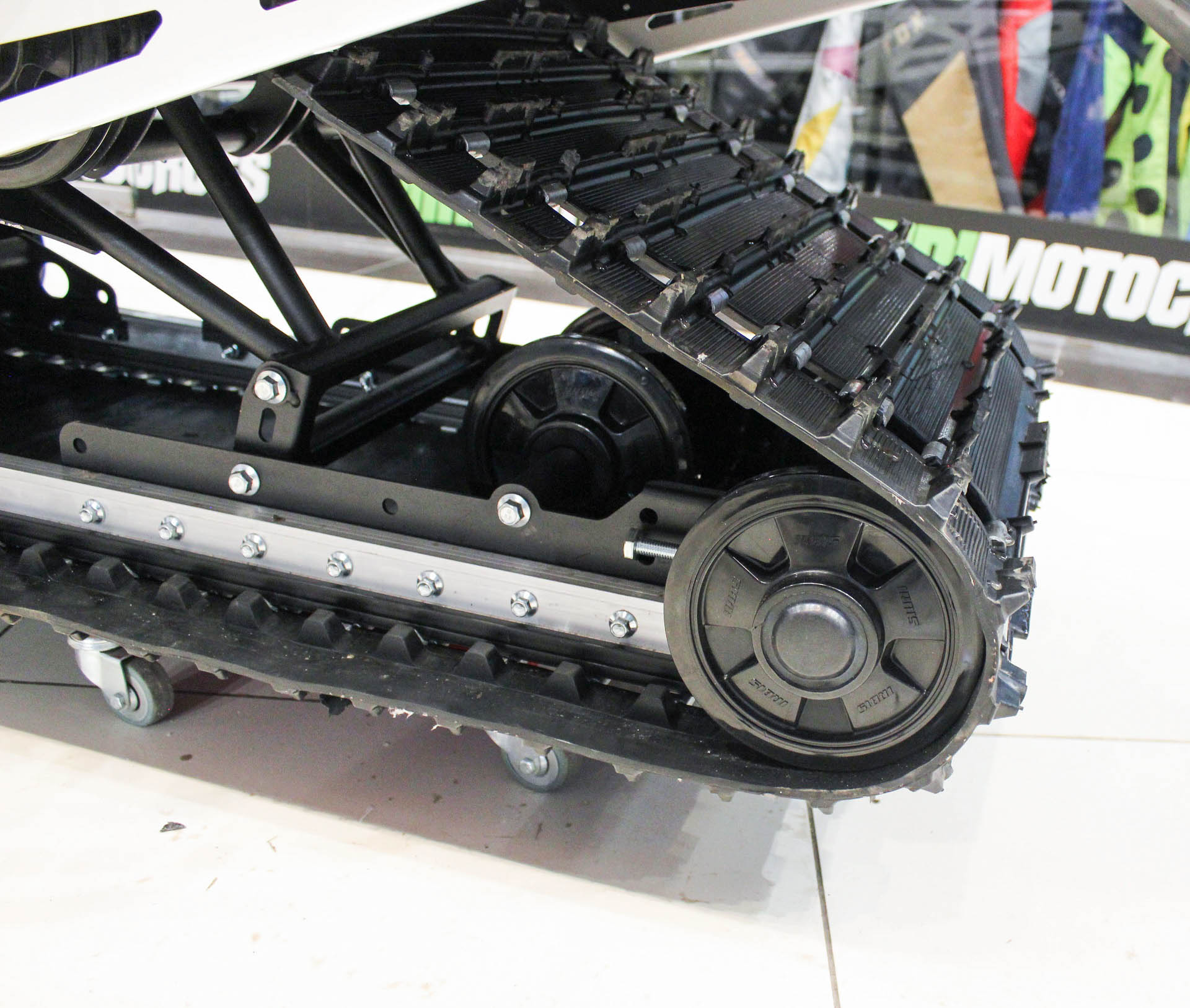 Гусеничный блок катково-склизовый, сделан по классической снегоходной компоновке, с использованием четырех амортизаторов с возможностью регулировок, что дает мягкость и плавность хода, а большой угол атаки гусеницы увеличивает проходимость. Гусеница длиной 3333мм, имеет ширину 500 мм, с грунтозацепами высотой 19мм, изготовлена для IRBIS на заводе COMPOSIT. Длинная и широкая гусеница обеспечивает большую площадь соприкосновения с поверхностью, что позволяет эффективно использовать всю мощность для выполнения задач любой сложности на любом снежном покрове.