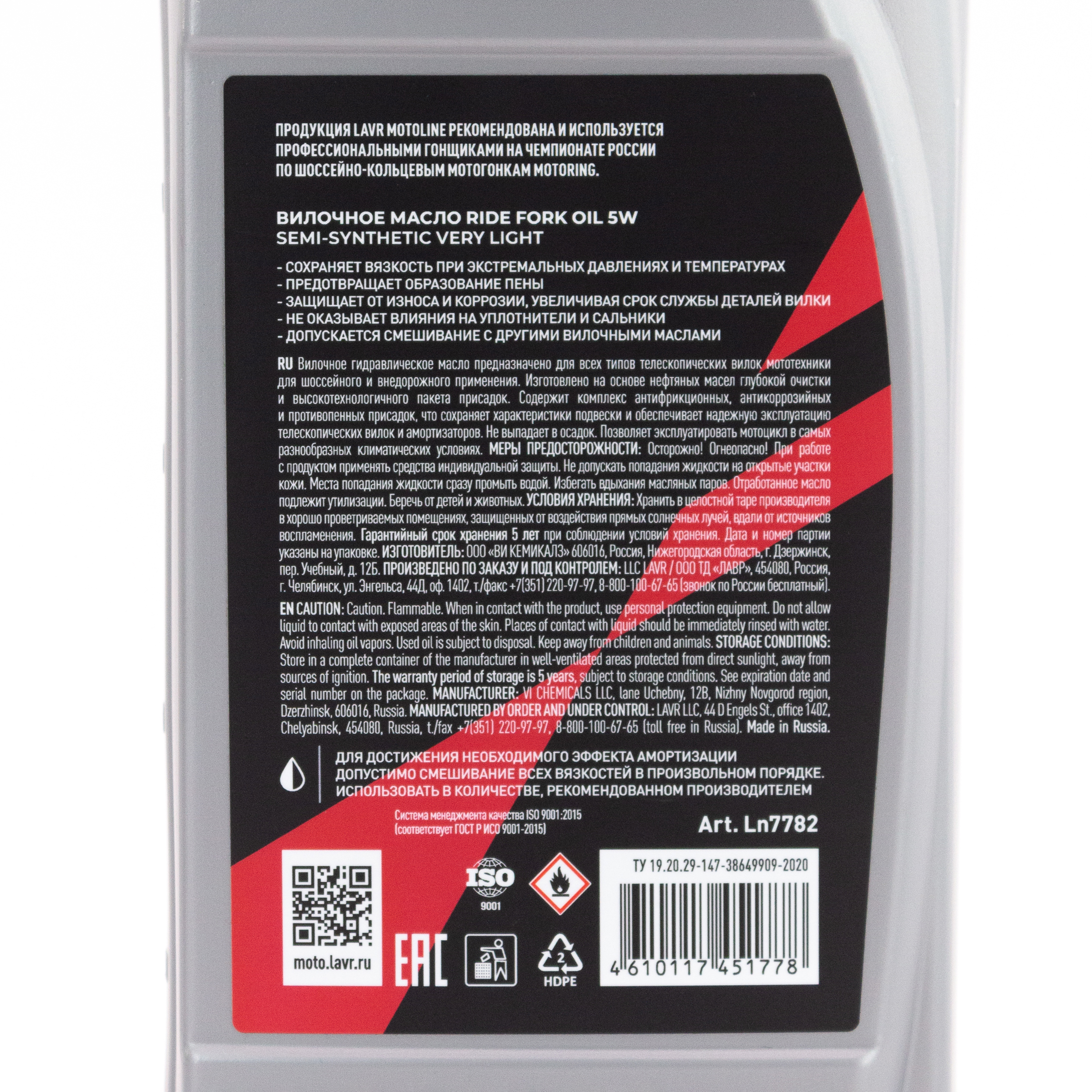 Вилочное масло LAVR MOTO RIDE Fork oil 5W