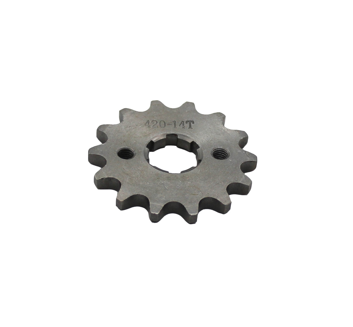 Звезда ведущая под 420 цепь. Подходит на валы двигателей питбайков и мотоциклов c диаметром вала ведущей звезды 20,00 мм. Количество отверстий под крепление - 2, с расстоянием между центрами крепежных отверстий - 34,00 мм. Число зубьев звезды - 14. Внешний диаметр звезды 61,00 мм. Толщина звезды - 6,00 мм. Материал - сталь.